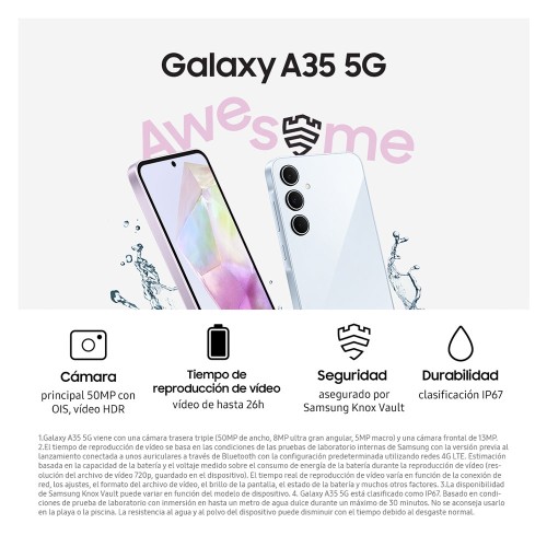Tu Galaxy A35 5G incluye actualizaciones de sistema operativo y mantenimiento de seguridad. Tienes hasta 4 generaciones de mejoras de sistema operativo y hasta 5 años de actualizaciones de seguridad. Tu móvil y tu información sensible están en buenas manos.