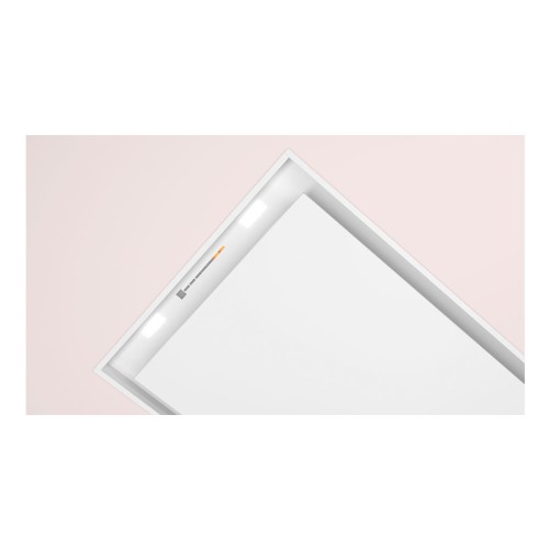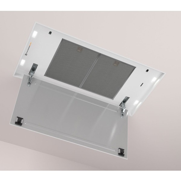 Extractor de techo 3BE296HW, una campana extractora de última generación con un elegante acabado en blanco. Sus dimensiones son de 90 cm de ancho y 50 cm de profundidad y puede instalarse en un falso techo con altura de hasta un mínimo de 20 cm.