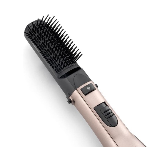 Seca y peina todo en uno con nuestro gran cepillo de aire de 1000W. Contiene un cepillo ovalado recubierto de turmalina-cerámica para agregar volumen y forma, y una boquilla de secado para garantizar un estilo suave y elegante. Incorpora nuestra tecnología iónica, liberando así acondicionadores iónicos para controlar el encrespamiento y aumentar el brillo a medida que vas peinando.