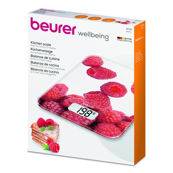 El bonito estampado de bayas de la balanza de cocina da color a su cocina.