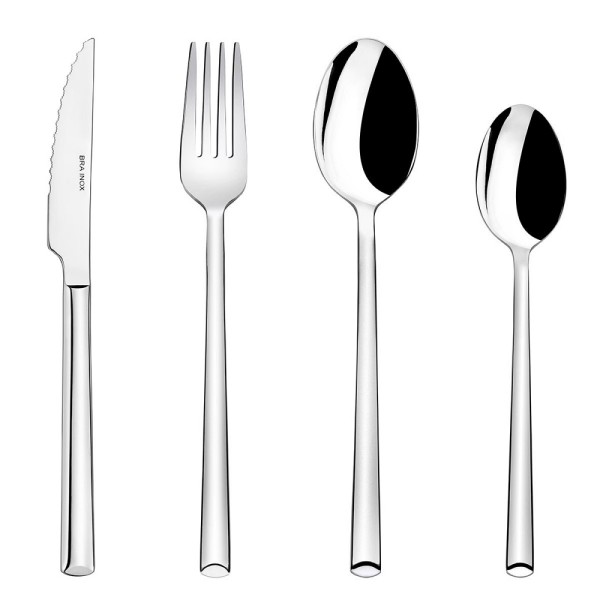 Cubertería Verona fabricada en acero inoxidable 18/10 con un diseño vanguardista y moderno de líneas puras y esenciales, que aúna practicidad y elegancia en cualquier mesa.