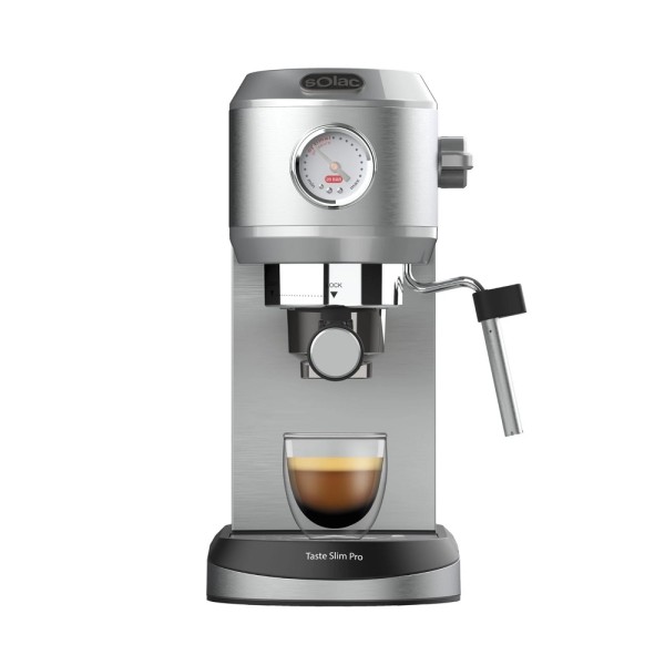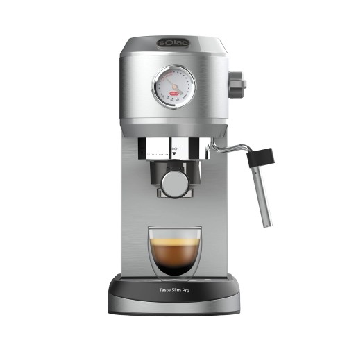La cafetera espresso Taste Slim Pro de Solac te ofrece múltiples posibilidades con la que podrás preparar 1 o 2 cafés a la vez, espumar leche y elaborar infusiones.