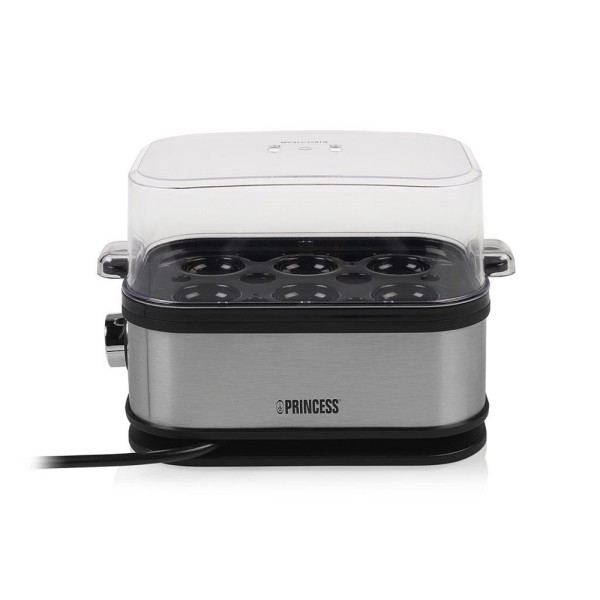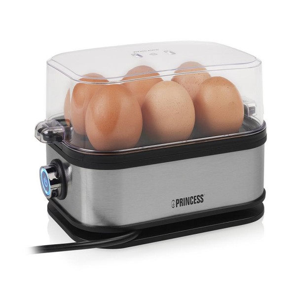 ¿Te apetece un huevo pasado por agua para desayunar o quizás un huevo bien cocido en la ensalada? Entonces el cuecehuevos 262046 de Princess es justo lo que necesitas. Tiene capacidad para seis huevos y viene con una tapa de plástico, un moderno diseño de acero inoxidable y un medidor para elegir el grado de cocción del huevo. Cocer un huevo nunca ha sido tan fácil.