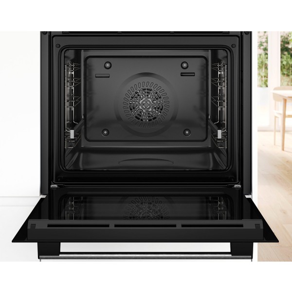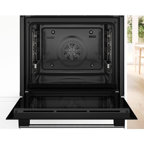 Añadiendo vapor , p. horneando un pan, el resultado de horneado es aún mejor. El vapor evita que los alimentos se sequen, proporciona una corteza deliciosamente crujiente y mantiene el pan esponjoso por dentro. Simplemente llene la cantidad de agua solicitada en el pequeño recipiente de agua extraíble y apto para lavavajillas que está integrado en la parte inferior del horno y ajuste el modo de calentamiento "hotair steam". Así, también otros platos, preparados al horno y asados resultan más sabrosos.