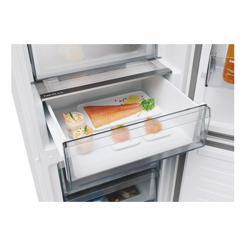 Este frigorífico Combi de 60 cm tiene una capacidad de 409 litros y ofrece espacio para almacenar una gran variedad de alimentos. Además, gracias a los amplios cajones del congelador dispondrás de espacio extra para objetos voluminosos.