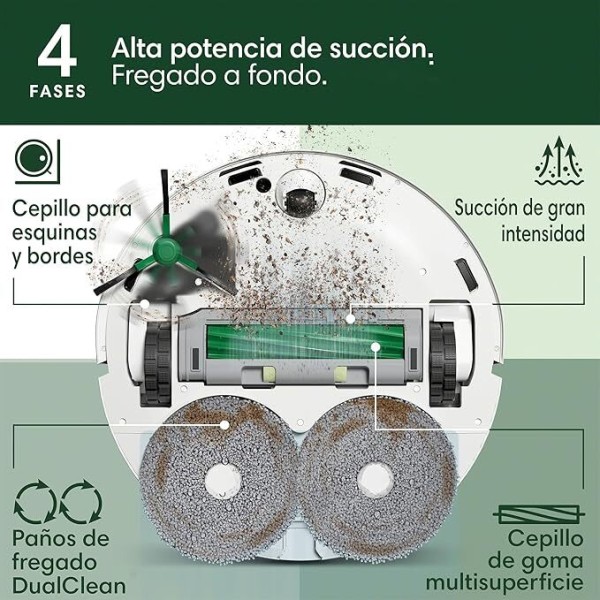 Aspirador Robot Roomba Plus 405 Combo - Base AutoWash, Mopas de Fregado, Evita Obstáculos, Wifi